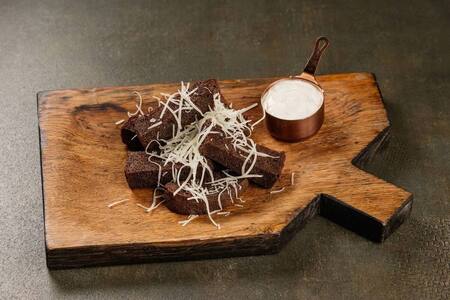 Гренки чесночные из бородинского хлеба с белым есночным соусом (с пармезаном)