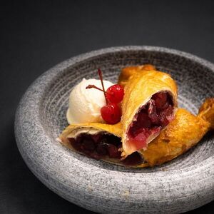 Штрудель с яблоком и вишней (подаётся с мороженым)